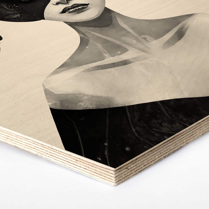 Dekoriere mit dem Wohnaccessoire aus Holzmaterial und verbessere die Wohnqualität im Raum! Diese Illustration besticht durch Kreativität und verleiht dem Raum ein modernes Flair. Fantasievolle Kunst in Schwarz erzählt eine Geschichte über eine junge Frau, deren Augen von einer Maske verdeckt werden. Dunkel und geheimnisvoll, aber auch modern und inspirierend sind die Werke von Ruben Ireland. Er beweist, dass man auch mit einfachen Mitteln grosse Effekte erzielen kann. Als Naturprodukt bringt das Holzbild im Hexagon-Format ein besonders angenehmes Raumklima in die eigenen vier Wände. Durch seine natürliche Maserung ist jedes Stück ein Unikat, während die Farbgebung in Beige und Schwarz ihm einen schicken und zeitgemässen Look verleiht.