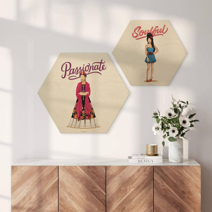 Frida in Pink – hochwertiger Holzdruck im Hexagon-Format