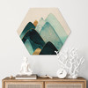 Hexagon-Holzbild Abstrakte Berge in Gold und Blau - SpaceFrog Designs