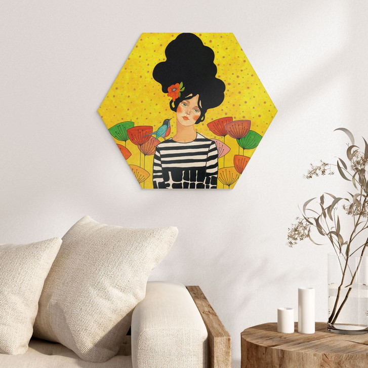 Hexagon Holzbild Blumenmädchen im Sommergarten - Hülya