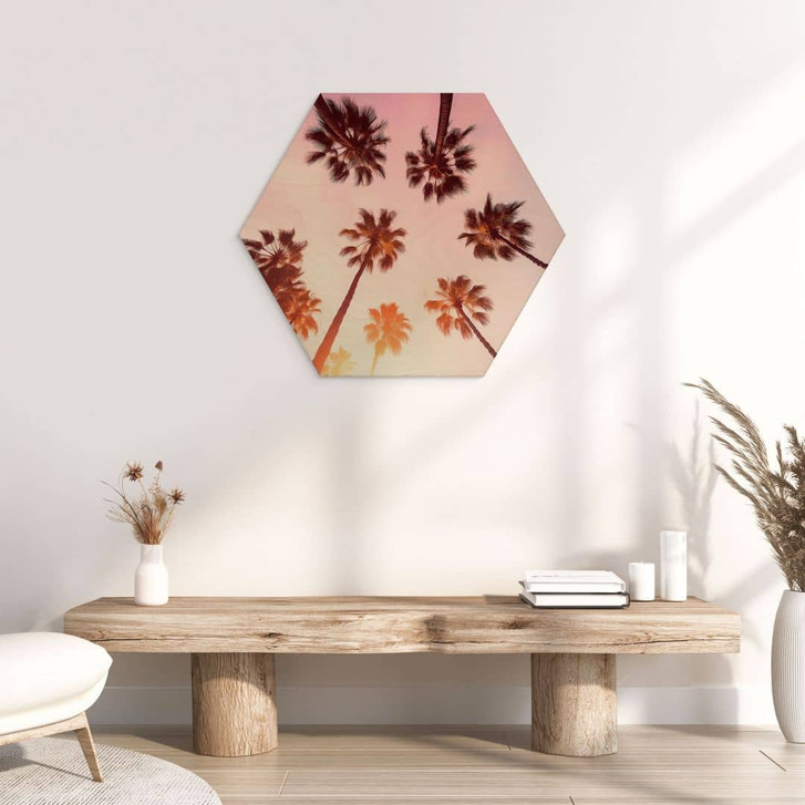Hexagon Holzbild California Dreaming mit Palmen-Blick - Hugonnard