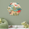 Hexagon Holzbild Farbenfrohe Dinosaurier im Urzeitwald - Bonne Müller