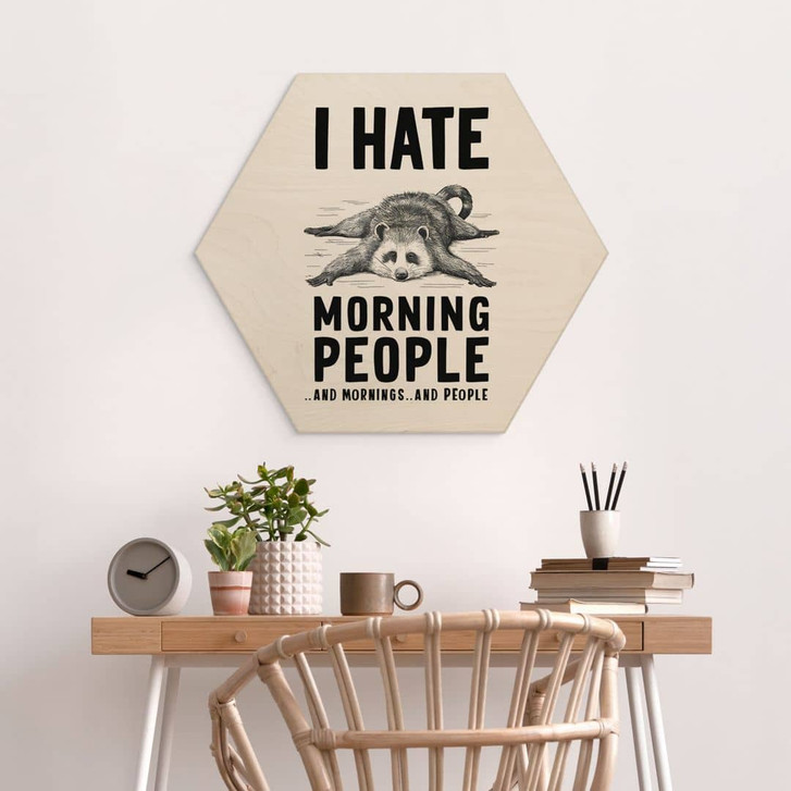 Hexagon Holzbild I hate morning people - Waschbär - Magnusson