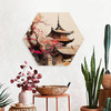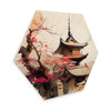 Hexagon Holzbild Japanische Pagode mit Kirschblüten - Jaszke