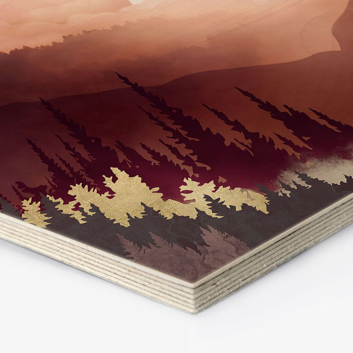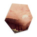 Hexagon-Holzbild Rosa Sonnenuntergang über dem Wald - SpaceFrog Designs