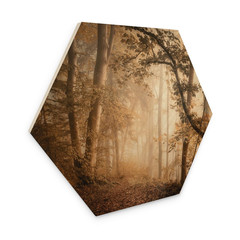 Hexagon Holzbild Wasserfall im Wald - Foto