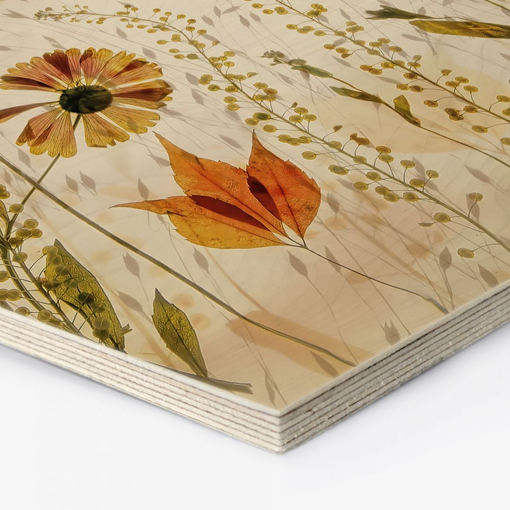 Das Motiv zeigt eine harmonische Vielfalt aus blühenden Gräsern, leuchtenden Blumen und schwebenden Schmetterlingen. Die natürlichen Beige- und Gelbtöne fügen sich nahtlos in verschiedene Einrichtungsstile ein und schaffen eine beruhigende, einladende Atmosphäre. Der Druck auf hochwertigem Holz verleiht dem Bild eine einzigartige Textur, die die Verbindung zur Natur unterstreicht.
