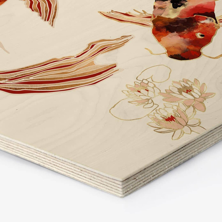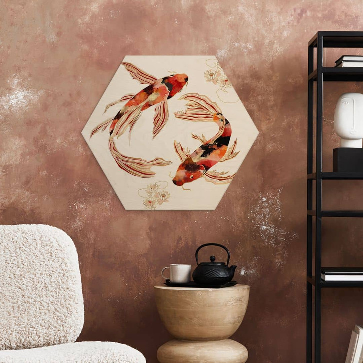 Hexagon Holzbild Zwei Kois im Teich - SpaceFrog Designs