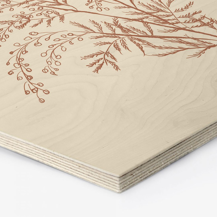 Die Farbe Moccamousse, eine der Pantone-Trendfarben für 2025, vermittelt Wärme, Natürlichkeit und zeitlose Eleganz. Die sanften Beigetöne des Holzes bilden den perfekten Hintergrund für die detaillierte Illustration, wobei Linien in einem warmen Braunton eine stilvolle Kombination aus Minimalismus und Natur schaffen. Dieses Design eignet sich sowohl für moderne als auch für klassische Wohnkonzepte.