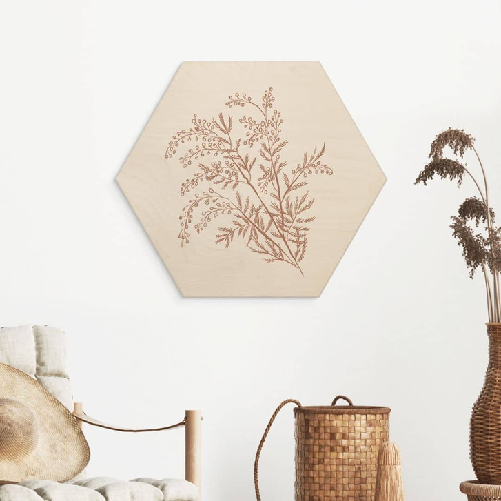Hexagon Holzbild Zweig der Akazie in Mokkafarben - Anis Illustration