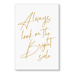 Eine positive Lebenseinstellung kann Wunder bewirken – und genau das verkörpert dieses aussergewöhnliche Wandbild auf Hexagon Alu-Dibond. Die kunstvolle Typografie in elegantem Goldton auf strahlend weissem Hintergrund verleiht jedem Raum eine elegante und motivierende Atmosphäre. Perfekt für alle, die ihr Zuhause oder Büro mit einer inspirierenden Botschaft bereichern möchten.