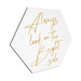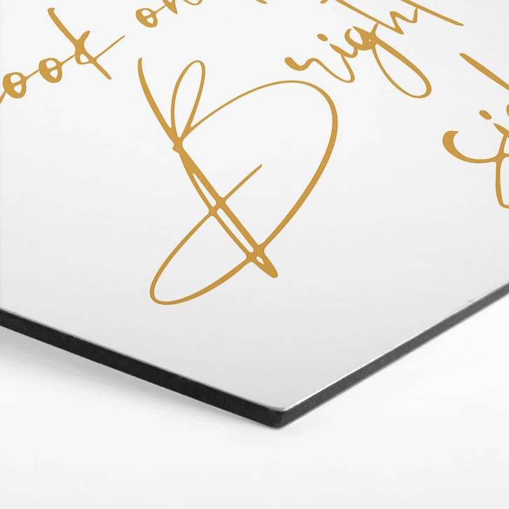 Verleihe deinem Wohn- oder Arbeitsraum eine stilvolle Note und lass dich jeden Tag von dieser positiven Botschaft inspirieren. Bestelle jetzt dieses einzigartige Hexagon-Wandbild aus Aluminium-Dibond und setze ein Zeichen für Optimismus und Eleganz!