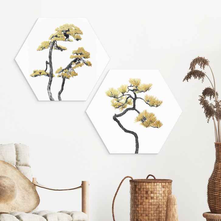 Japanische Bonsais als Fotokunstdruck auf Aluminium-Dibond im Sechseckformat