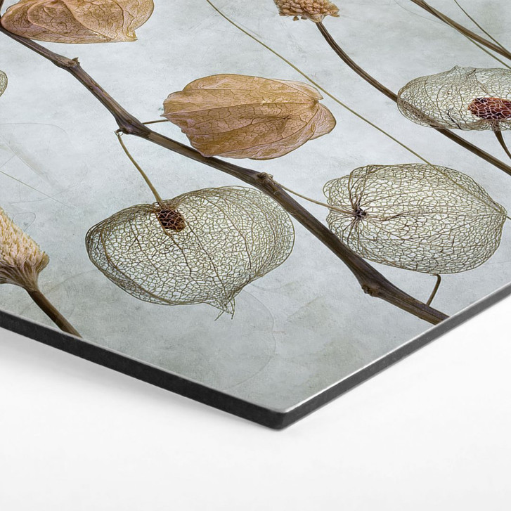 Hexagon Wandbild Getrocknete Lampionblumen - Disher - Alu-Dibond