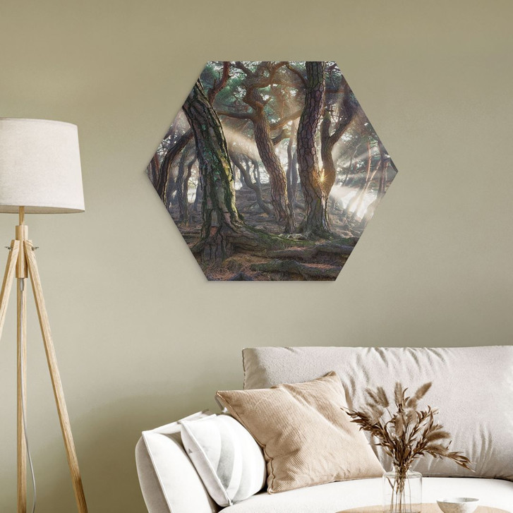 Hexagon Wandbild Heiliger Kiefernwald - Ryu - Alu-Dibond