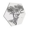Hexagon Wandbild Minimalistischer Baum in ruhiger Landschaft - Flour - Alu-Dibond