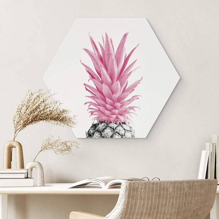 Hexagon Wandbild Pinke Ananas - 1X Studio - Alu-Dibond