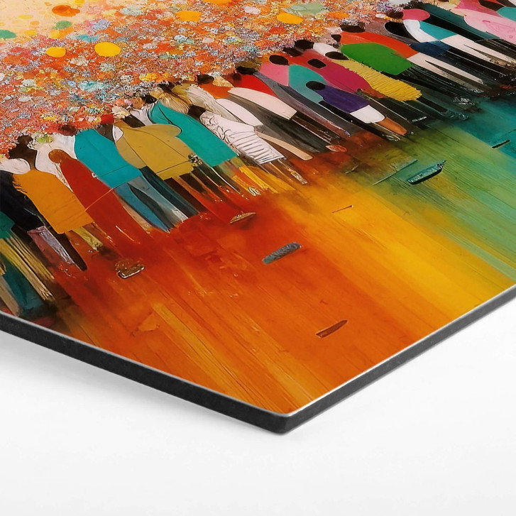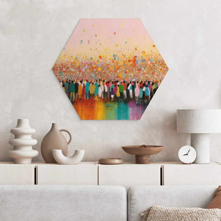 Modern, zeitlos, abstrakt oder minimalistisch – bei trenddeko.ch finden Sie genau das, was zu Ihrem persönlichen Stil passt. Dieser Kunstdruck ist dank des ungewöhnlichen Farbenspiels ein unvergleichlicher Blickfang. Glückliche Menschen haben sich an einem Ort versammelt, um das bunte Leben zu feiern. Der farbenfrohe Kunstdruck eignet sich besonders für das Wohnzimmer, wo die ganze Familie zusammenkommt. Aber auch im Schlafzimmer lässt sich das Motiv als sechseckiges Bild leicht anbringen und schafft eine wunderbare Wohlfühlatmosphäre. Dieses Motiv wird direkt auf hochwertige Aluminiumplatten gedruckt und ist langlebig, leicht zu reinigen und dank seiner leuchtenden Farben witterungsbeständig. Daher kann es problemlos im Innen- und Aussenbereich angebracht werden. Mit diesem Wandbild lassen sich tolle Effekte im Raum erzielen.