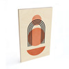 Möchtest du dein Zuhause verschönern? Wir haben eine grosse Auswahl an dekorativen Wandaccessoires, die dich glücklich machen werden. Der Kubistika-Kunstdruck zeigt verschiedene geometrische Formen in der Trendfarbe „Peach“. Du kannst einen Halbkreis, zwei Kreise in Pfirsichfarben und die schwarzen Linien eines Regenbogens sehen.
