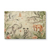 Das Motiv zeigt eine harmonische Komposition von Tieren wie einem glücklichen Elefanten, einem neugierigen Panda, einem verspielten Affen und einem friedlich schlafenden roten Panda, eingebettet in eine üppige Vegetation aus Bambus und tropischen Pflanzen. Majestätische Vögel fliegen über den Tieren, während zarte Schmetterlinge die Szene zum Leben erwecken. Die sanften Aquarelltöne und liebevoll gestalteten Details schaffen eine beruhigende und zugleich faszinierende Umgebung, die ideal für ein Kinderzimmer ist.