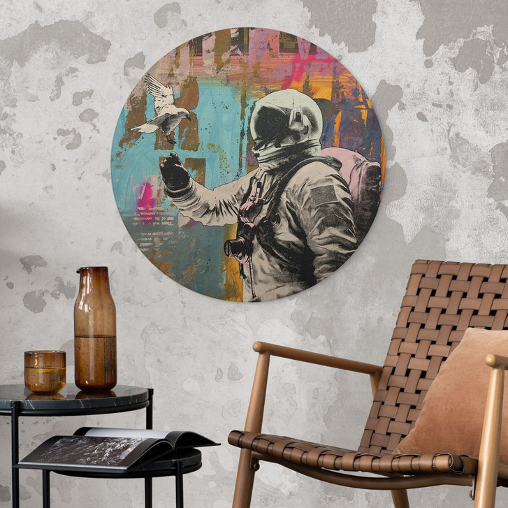 Holzbild Astronaut mit Taube - Kuryliuk - Rund