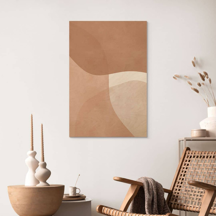 Dieses stilvolle Holzbild kombiniert weiche Aquarellformen mit harmonischen Brauntönen und schafft so eine Atmosphäre der Ruhe und Geborgenheit. Die fliessenden Farbverläufe und weichen Übergänge verleihen dem Motiv eine organische Leichtigkeit, die sich perfekt in moderne Wohnkonzepte einfügt.