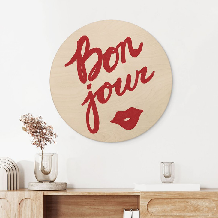 Holzbild Bonjour mit Kussmund - Fritsch - Rund