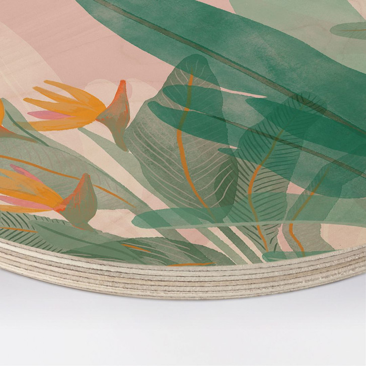 Holzbild Botanische Illustration in Grün und Rosa - Goed Blauw - Rund