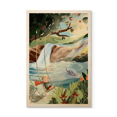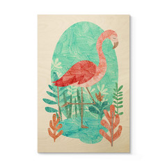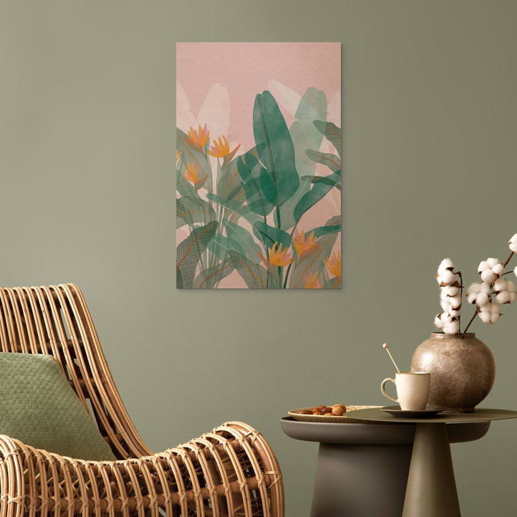 Holzbild Botanische Illustration in Grün und Rosa - Goed Blauw