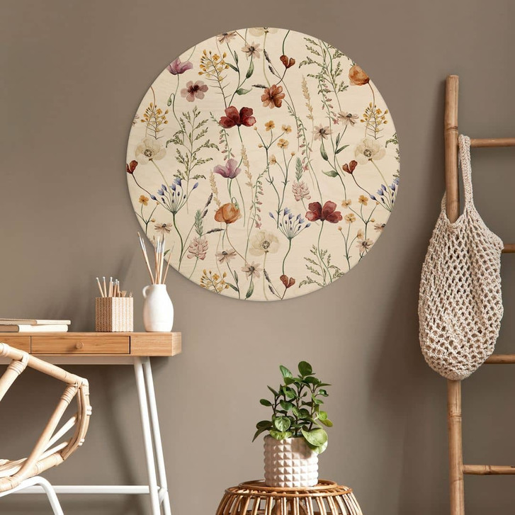 Holzbild Bunte Wildblumen - UN Designs - Rund
