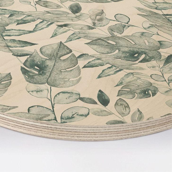 Holzbild Dschungelblätter Aquarell Creme - Bloomery Decor - Rund