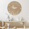 Dieses kunstvolle runde Holzbild entführt in die magische Welt des Ozeans. Mit seinen sanften Naturtönen und zarten Illustrationen bringt das Motiv eine ruhige und harmonische Atmosphäre in dein Zuhause. Die runde Form unterstreicht den organischen Charakter des Kunstwerks und macht es zu einem stilvollen Blickfang in jedem Raum.
