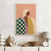 Dieses eindrucksvolle Motiv zeigt eine stilisierte Darstellung einer Frau, die mit ihren ausdrucksstarken Farben und Mustern ins Auge fällt. Die Kombination aus einem smaragdgrünen geometrischen Schachbrettmuster, leuchtend senfgelben Streifen und zarten Details wie dem Pastellrosa des Hintergrunds schafft eine harmonische Balance zwischen Kontrasten und sanften Tönen. Die minimalistischen roten Akzente und klaren Linien verleihen dem Kunstwerk Tiefe und Individualität. Dieses Motiv ist eine Hommage an die Stärke und Komplexität der modernen Weiblichkeit.