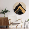 Lust auf neue Farben? Mit dieser Dekorationsidee schaffst du eine farbenfrohe und auffällige Dekoration. Der runde Kunstdruck von Elisabeth Fredriksson ist ein toller Blickfang an der Wand. Die vier spitzen Berge stehen wie ein Fels hintereinander. Die Berge sind in Schwarz, Grau und Gold dargestellt.