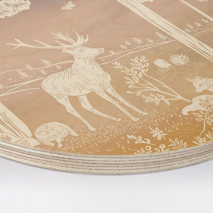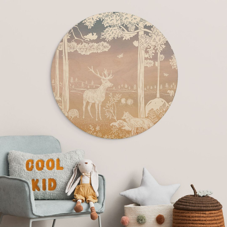 Holzbild Friedlicher Wald mit Hirschen und Füchsen - Ombre - Kikki Belle - Rund