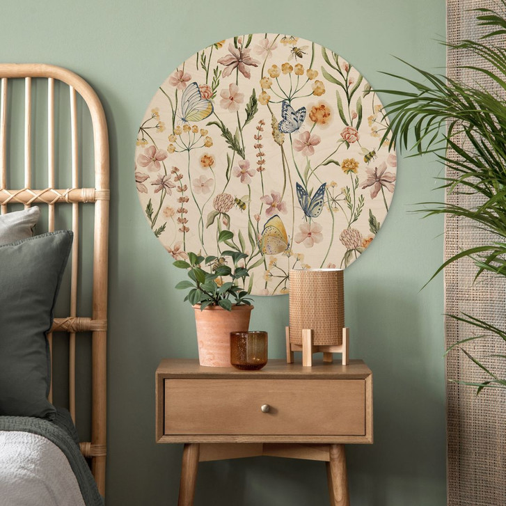 Holzbild Frühlingswiese mit Schmetterlingen - UN Designs - Rund
