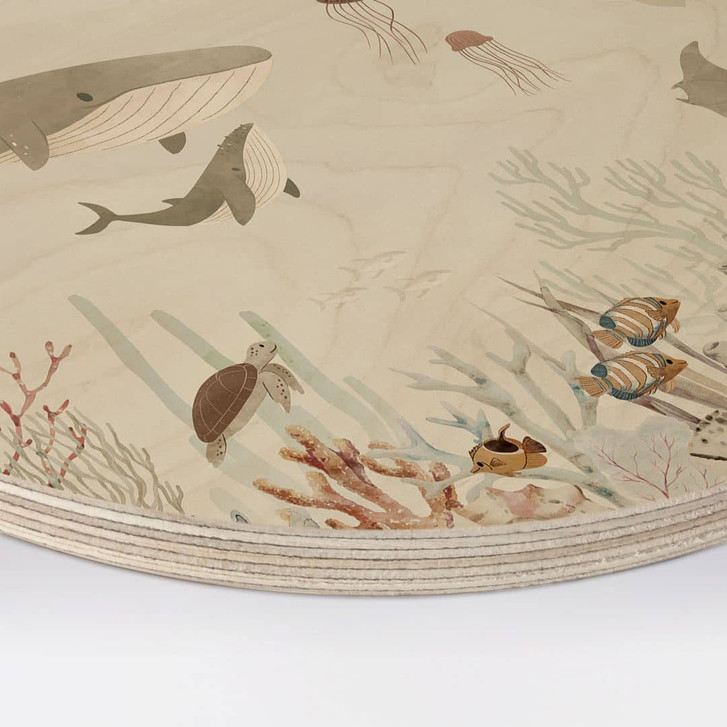 Dieses runde Holzbild von Oliver Robins bringt die Schönheit des Ozeans in einer einzigartigen Kombination aus Kunst und Natur in dein Zuhause. Das sanfte Zusammenspiel der warmen Holzmaserung mit den detaillierten Illustrationen macht dieses Motiv zu einem echten Hingucker.