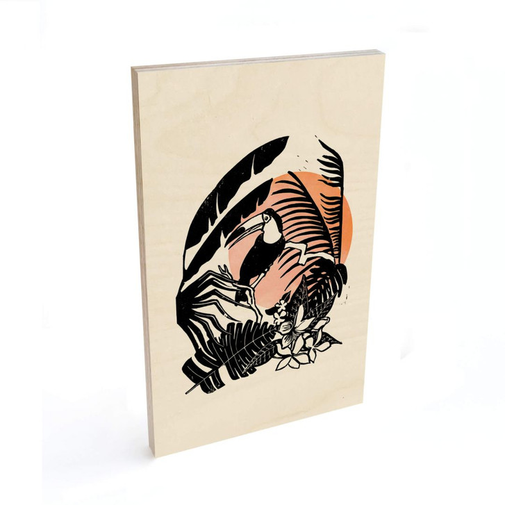 Holzbild Goed Blauw - Linolschnitt Tukan