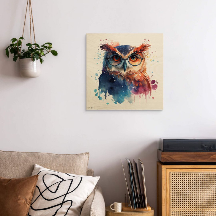 Holzbild Heine - Intelligente Eule mit Brille - Astro Cruise - Quadratisch