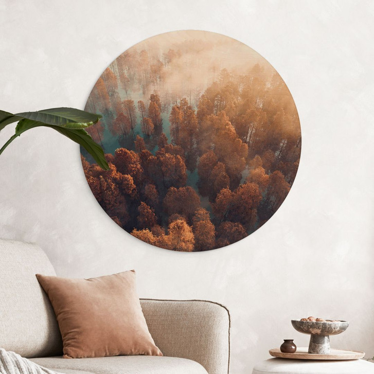 Holzbild Herbstwald im Nebel - Ioricon - Rund