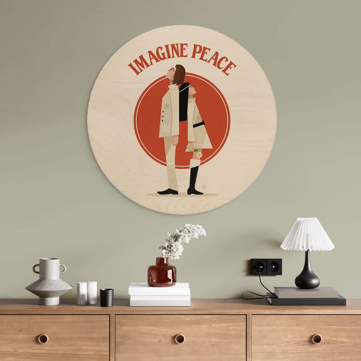 Holzbild Imagine Peace - Zwei für Frieden und Hoffnung - Retrodrome - Rund