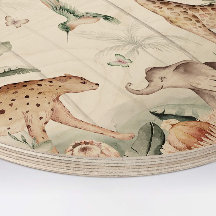 Holzbild Kinderzimmer - Tiere im Dschungel Rund - Kvilis