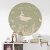 Dieses kunstvolle runde Wandbild bringt die Schönheit des Meeres auf stilvolle und natürliche Weise in Ihr Zuhause. Die sanften Grüntöne und zarten Illustrationen schaffen eine ruhige Atmosphäre und fügen sich harmonisch in jedes Interieur ein. Die besondere Maserung verleiht dem Motiv eine warme, organische Note, die es einzigartig macht.