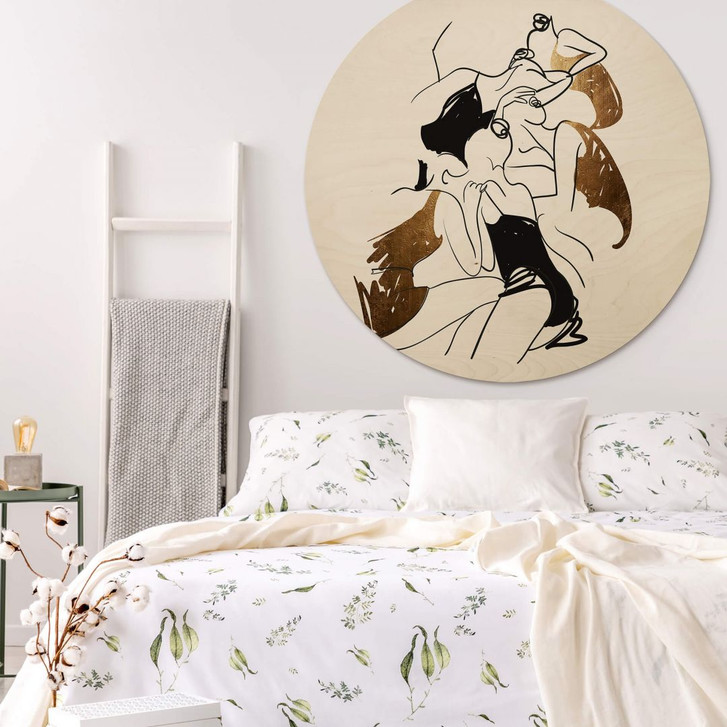 Du möchtest dein Zuhause neu dekorieren und brauchst Inspiration? Dieses Wandbild aus Naturholz verleiht dir einen neuen, frischen Look! Dieser Kunstdruck schafft ausserdem ein Gefühl von Weite. Das trendige Design des künstlerischen Allrounders Kubistika überrascht mit seinem minimalistischen Stil als Linienkunstwerk. Schwarze und goldene Farbakzente verleihen dem Bild Ausdruck und Struktur. Das Bild von Ballerinas im modernen Look als hochwertiges Holzbild im runden Stil verschönert im Nu Ihre Lieblingswand. Ob im Eingangsbereich, Wohnzimmer oder Schlafzimmer – dieser moderne Kunstdruck sorgt mit Sicherheit für einen eindrucksvollen Blickfang an der Wand. Mit dem Holzbild entscheiden Sie sich zudem für ein Naturprodukt, das durch seine beigefarbene Farbe und das trendige Design mit zeitgemässer Optik besticht. Bei all unseren Holzdekorationsartikeln ist die Maserung noch gut zu erkennen, was jedes Stück zu einem echten Unikat macht.