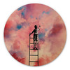 Dem Alltag entfliehen und etwas Beeindruckenderes sehen als nur eine schlichte, farblose Wand? Mit diesem Wandbild zauberst du einen himmlischen Look! Taudalpoi ist ein Digitalkünstler aus Norwegen, der sowohl retro-futuristische als auch surreale Werke erschafft. Der Kunstdruck „Cloud Painter“ zeigt einen Jungen, der mithilfe einer Leiter zu den Wolken hinaufklettert. Die surreale Kunst erinnert an die Streetart von Banksy. Mit diesem runden Holzbild in rosa Farben holst du dir ein Naturprodukt für dein Zuhause, das durch seine Stabilität und die markante Maserung besticht. Damit das Bild einfach und mühelos angebracht werden kann, bieten wir optional eine vormontierte Wandhalterung an.