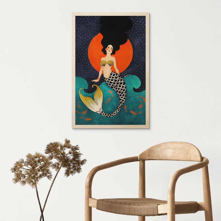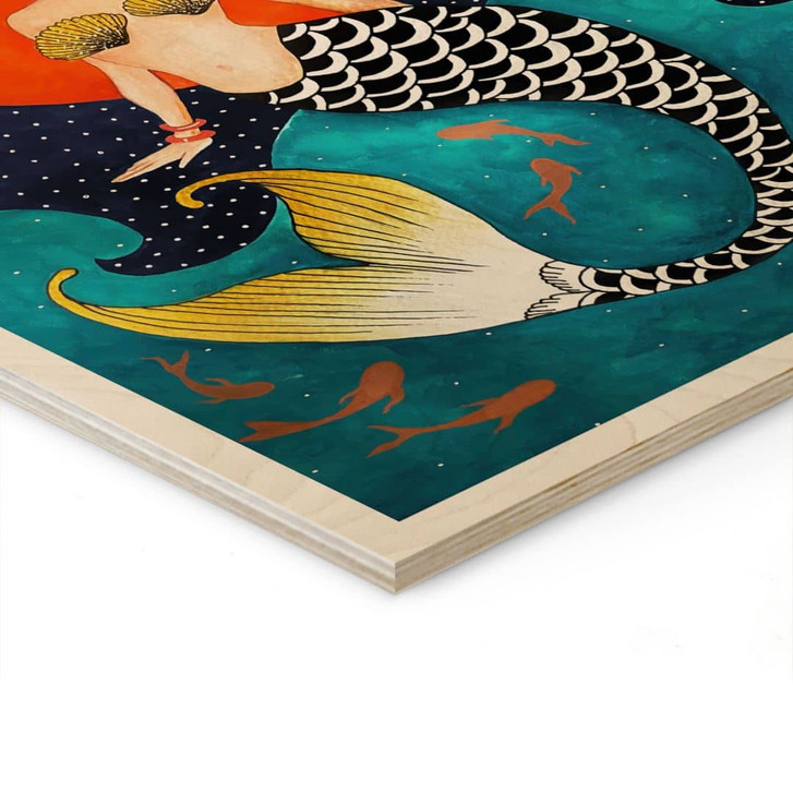 Holzbild Meerjungfrau im roten Mondlicht - Hülya