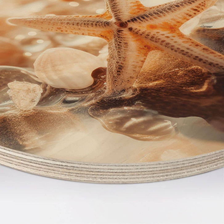 Holzbild Muscheln am sonnigen Strand - Treechild - Rund