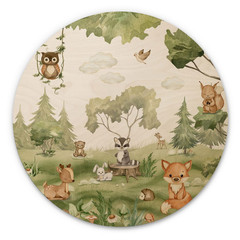 Holzbild Oliver Robins - Niedliche Tiere unter Palmen - Rund
