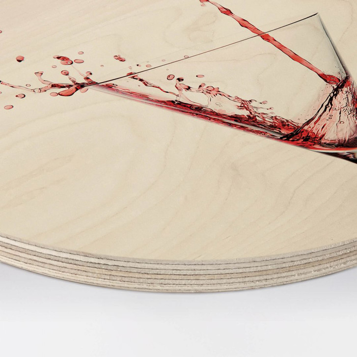 Schaffe dir mit unseren hochwertigen Holzbildern deine ganz persönliche Wohlfühloase! Das Foto von Christian Pabst zeigt den prickelnden Moment, wenn ein leckerer roter Cocktail in ein edles Glas gegossen wird. In der Nahaufnahme sieht man deutlich, wie die Flüssigkeit schwungvoll über den Rand spritzt.
