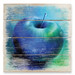 Das Motiv der zeitgenössischen Künstlerin Annette Schmucker stellt einen Apfel in leuchtend blauen Farben dar.